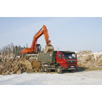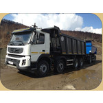 Volvo FM в варианте самосвала, с колёсной формулой 6х4. Двигатель грузовика — D 13, рядный шестицилиндровый турбодизель с интеркулером. В системе газораспределения данного двигателя предусмотрены 4 клапана на цилиндр. Силовой агрегат развивает 400 л.с.